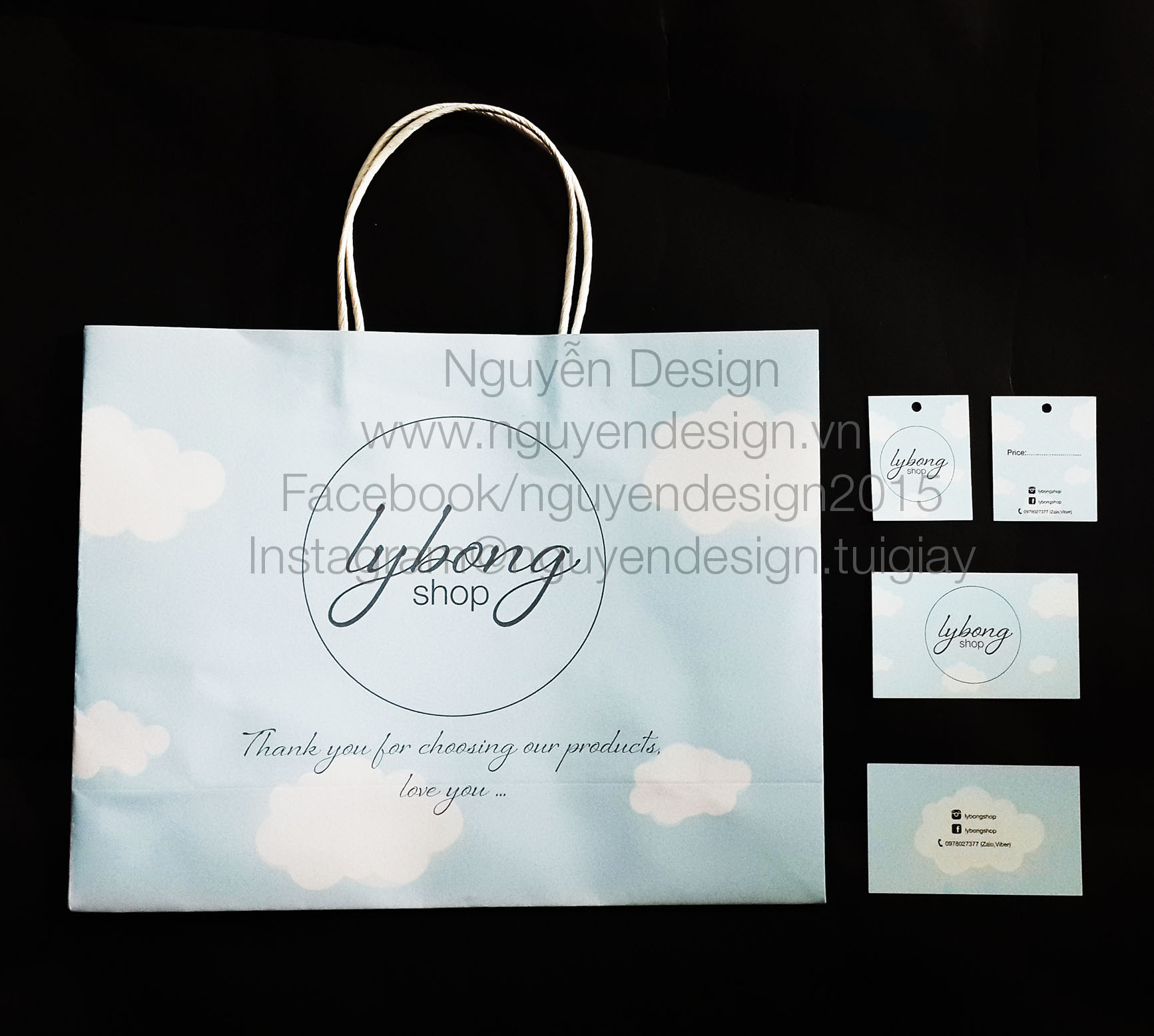 Túi Kraft trắng size L đứng in 1 mặt, quai giấy trắng