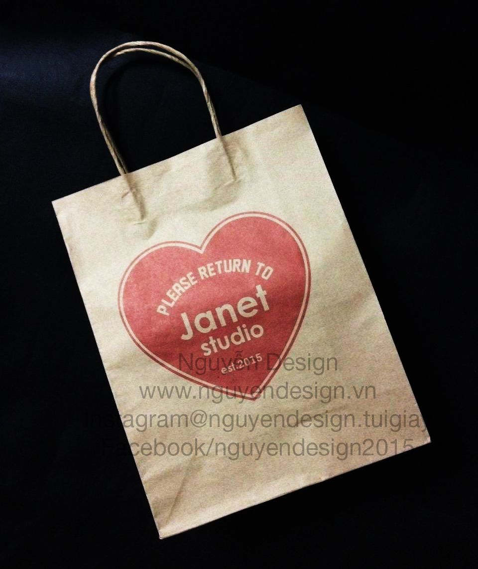 Túi Kraft nâu thường size M in 1 mặt, quai giấy