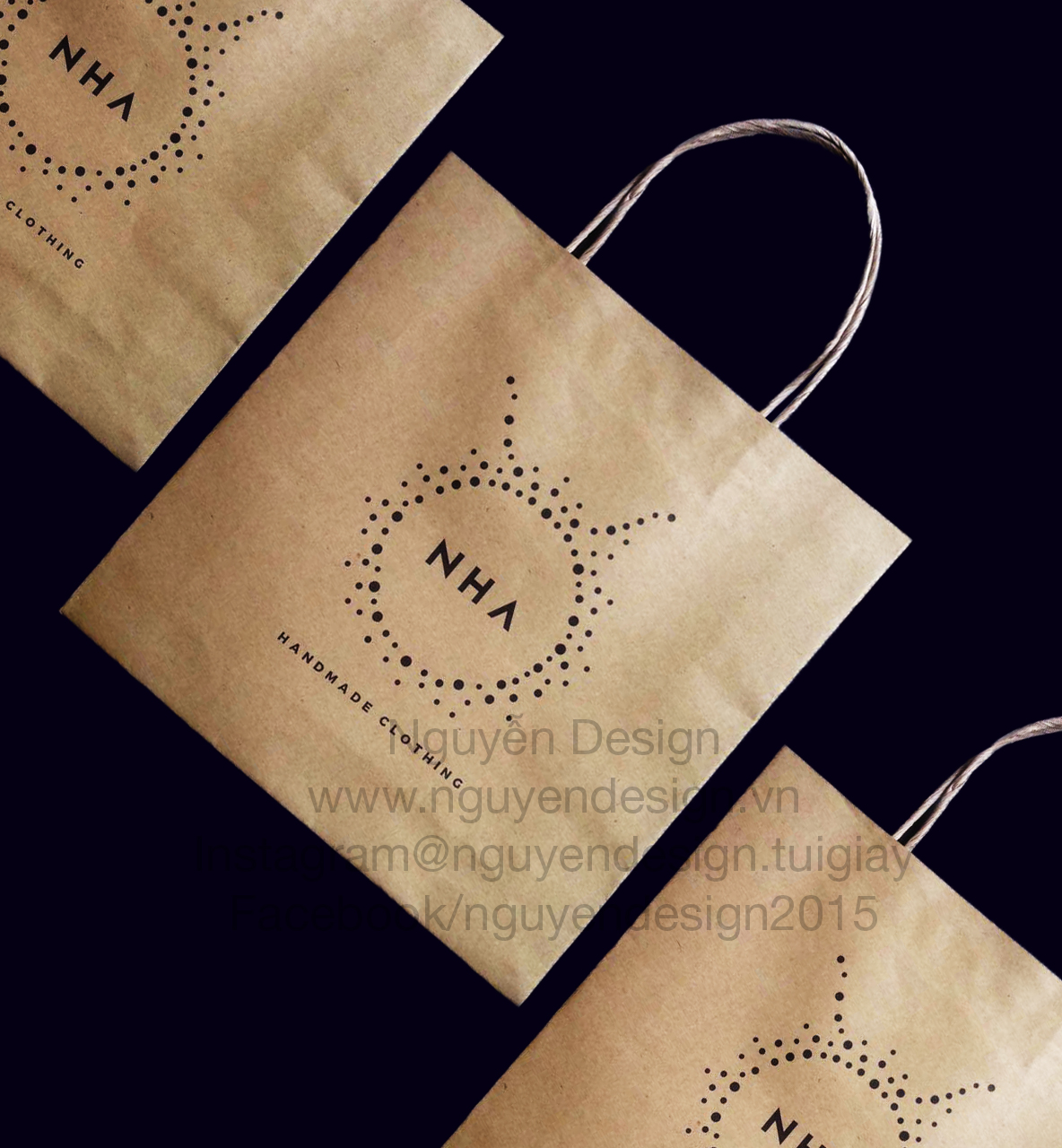 Túi Kraft nâu thường size M in 1 mặt, quai giấy