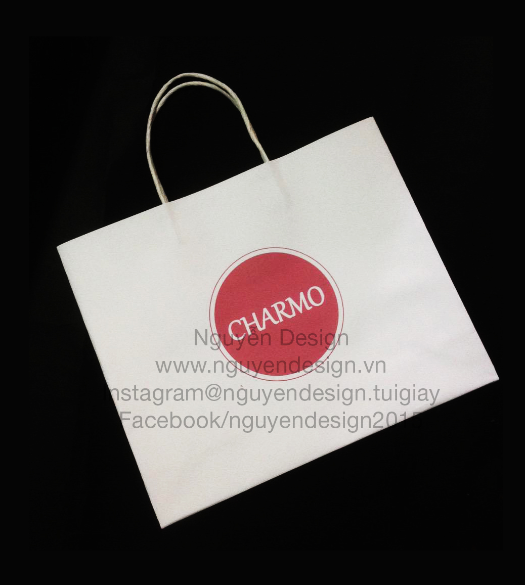 Túi Kraft nâu thường size M in 1 mặt, quai giấy