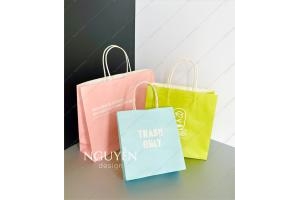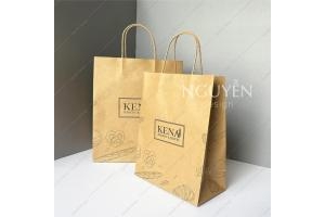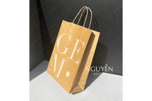 Túi giấy kraft nâu, in mực trắng, quai giấy nâu