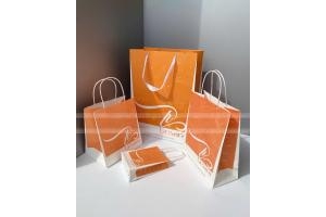 Túi giấy Kraft trắng, Kraft nâu, quai giấy dẹp cung vuông