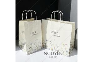 Túi giấy kraft nâu, in hoạ tiết, quai giấy nâu