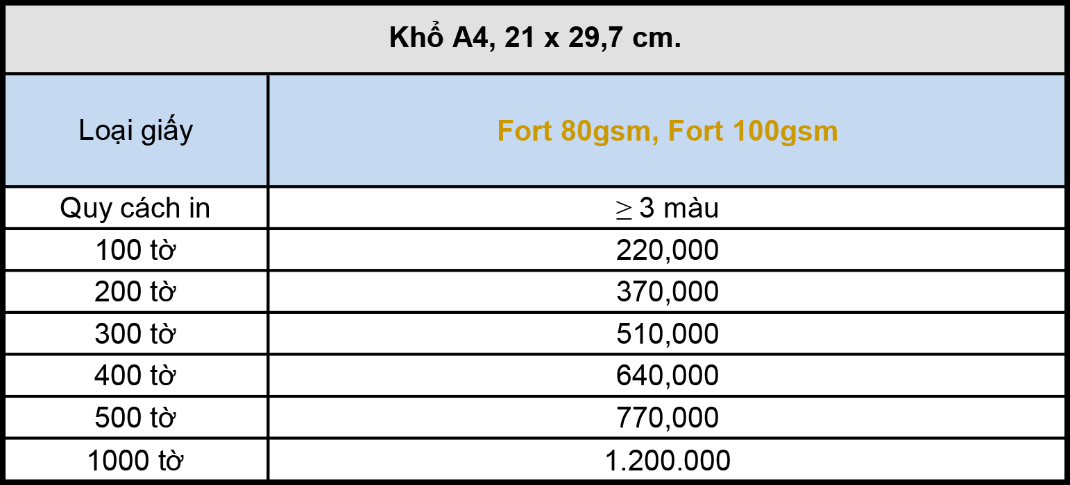 Bảng giá giấy tiêu đề khổ A4 (21x29.7cm)