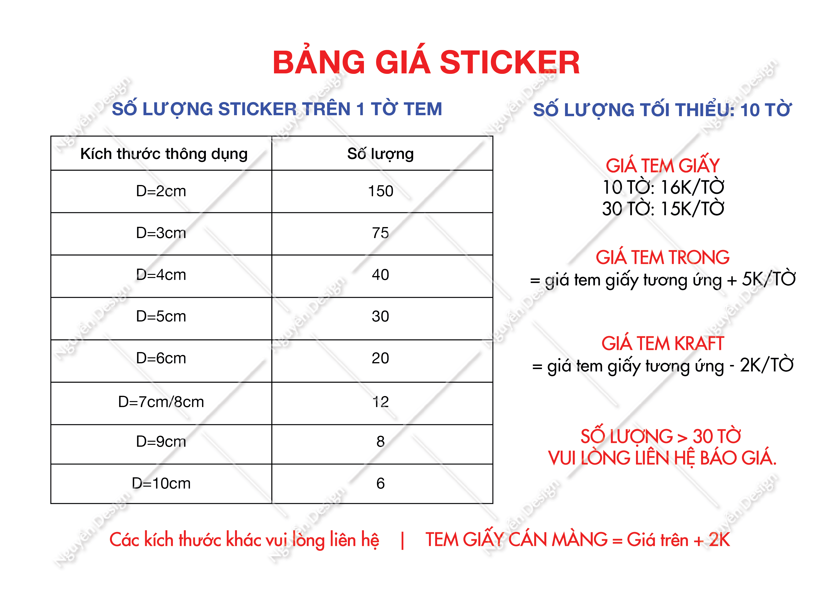 Bảng giá Namecard - Tag -Voucher Số lượng ít