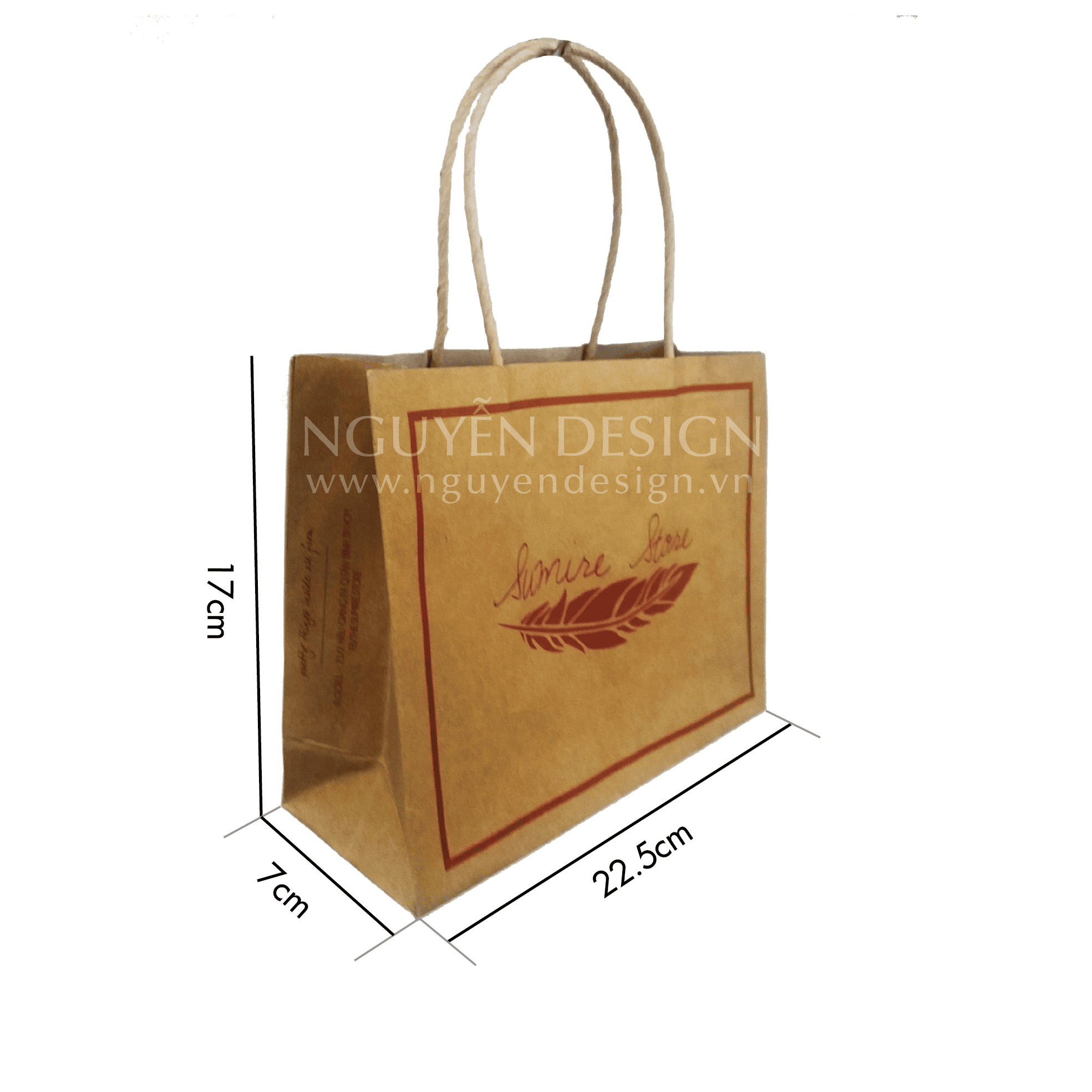 Túi giấy Kraft nâu 170gsm, quai giấy nâu tròn, in logo 1 mặt